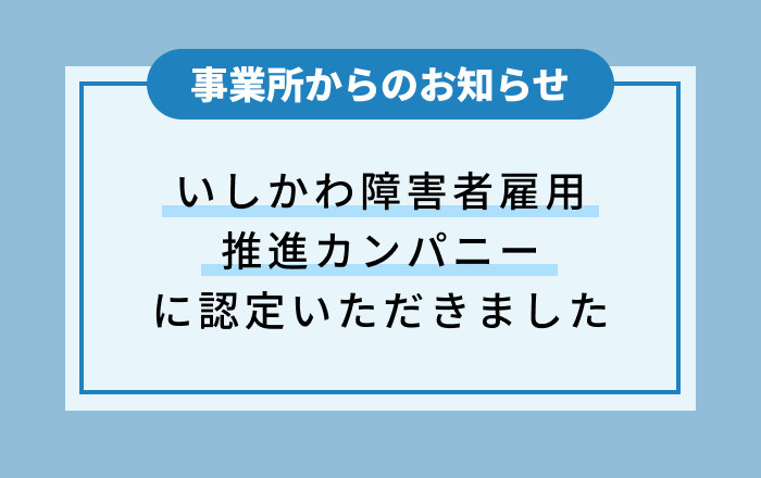 いしかわ障害者雇用推進カンパニーに認定いただきました